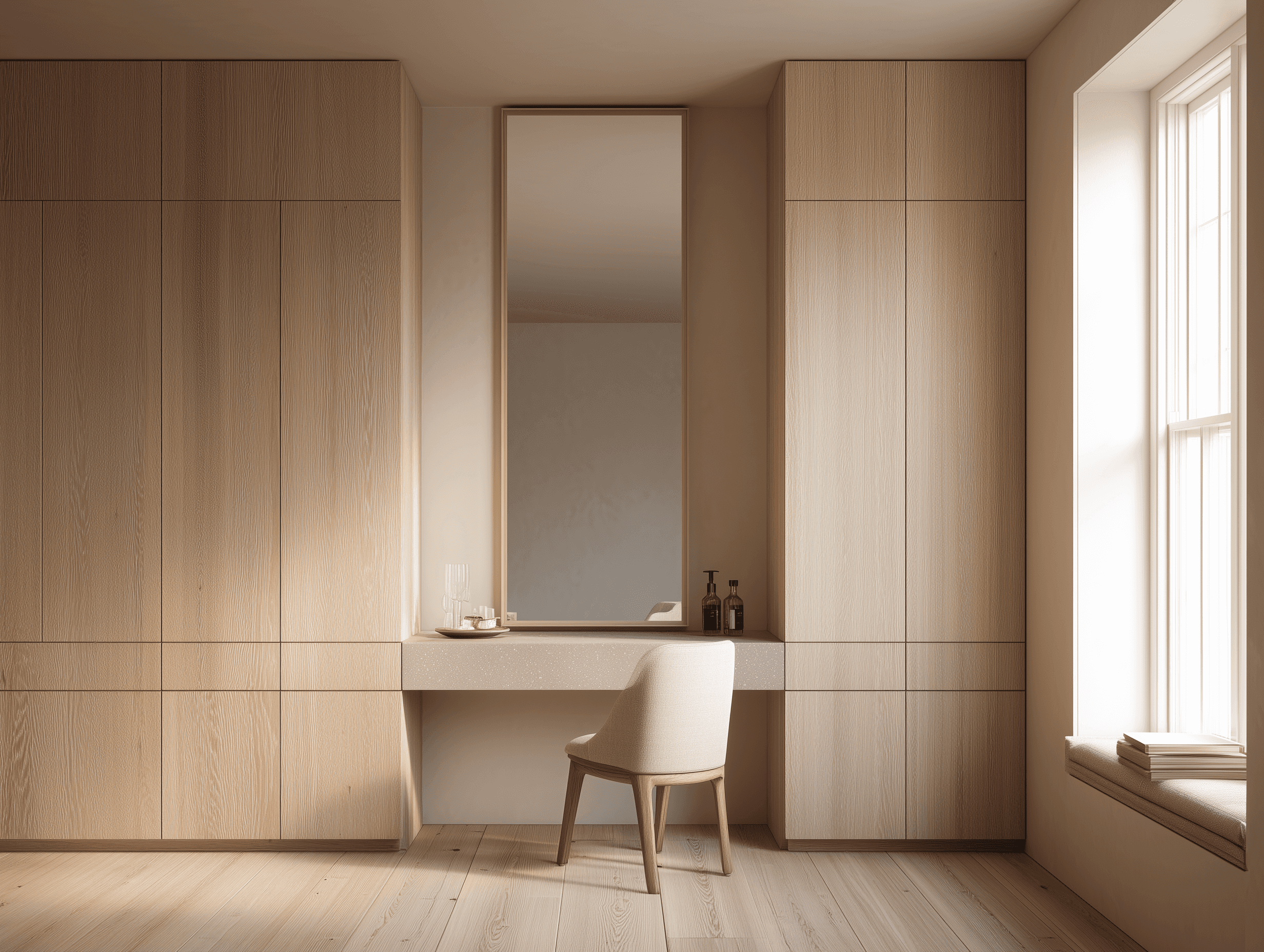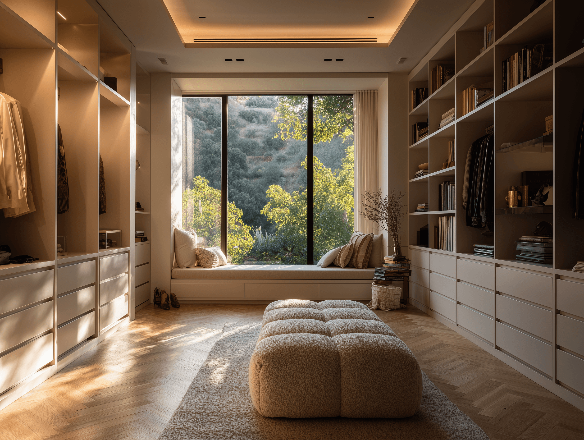 Most closets are sold by linear foot. Ours begin with a conversation about what you actually own — how many suits you hang, which stacks you fold, what you reach for in the first ten minutes of the day.